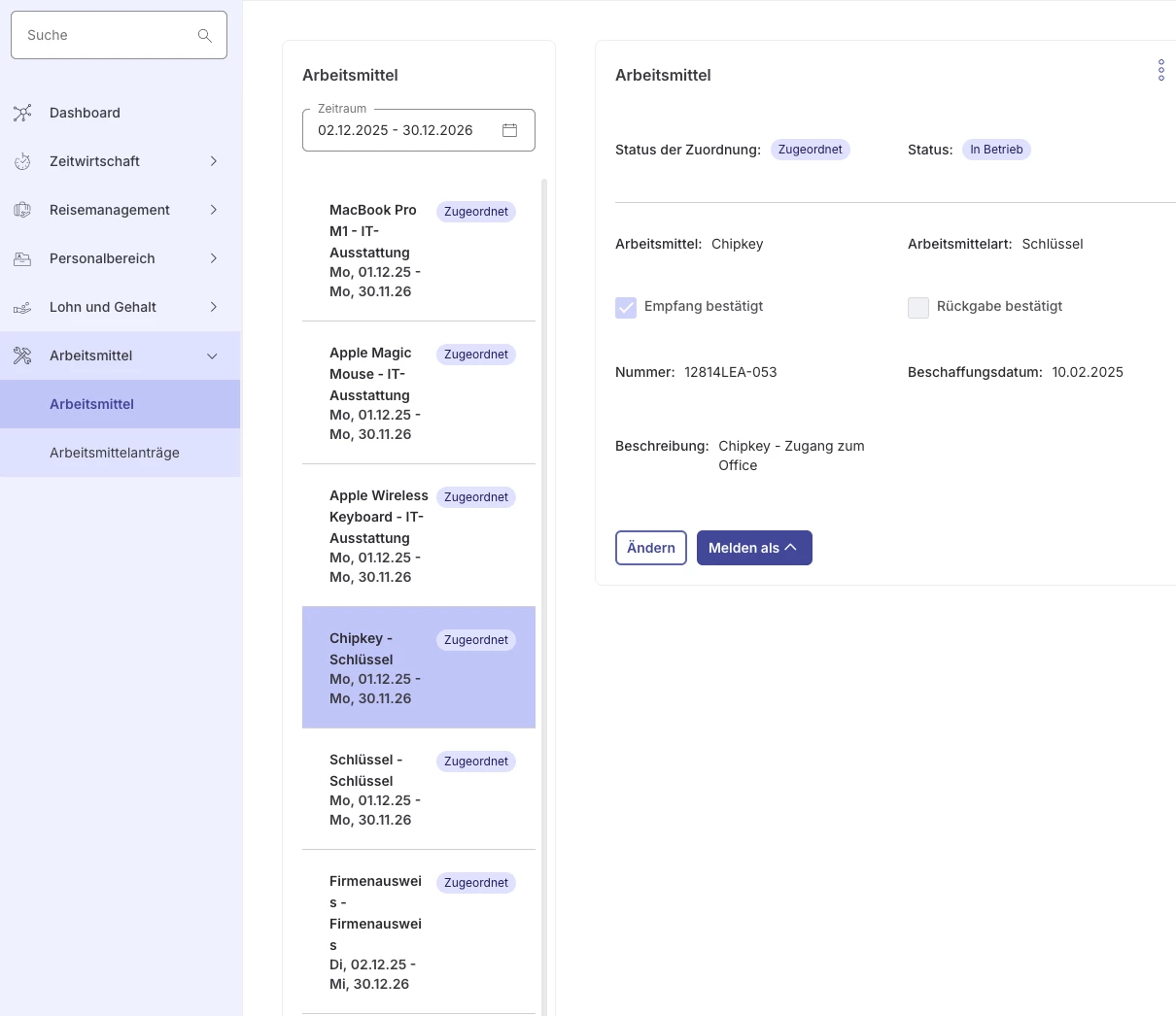 wir bereiten aktuell den Wechsel von HR Works zu Personio vor. Ein wichtiger Punkt für meine Präsentation ist die Abbildung unserer Arbeitsmittel-Verwaltung.