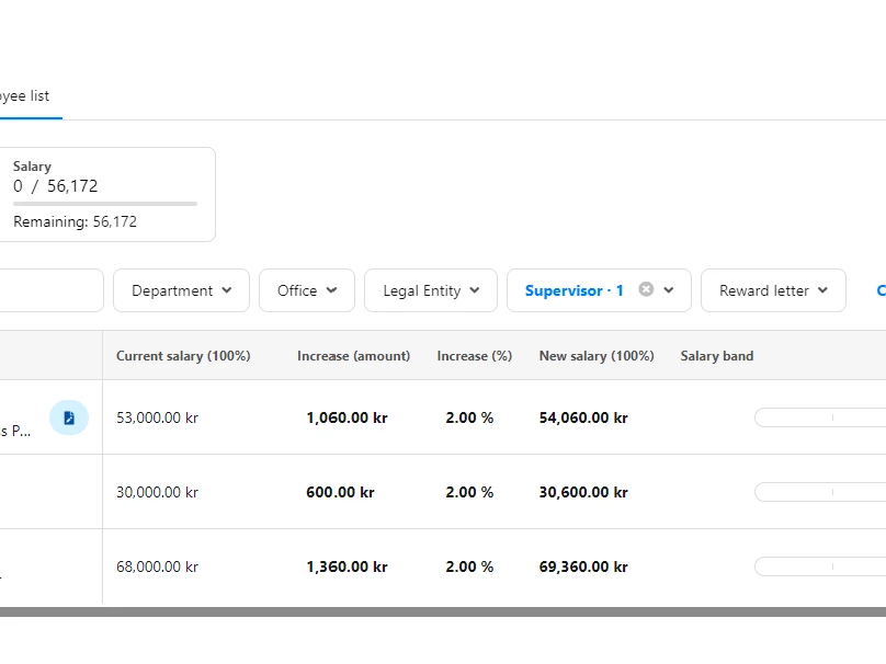 Supervisors can propose salary increases by a currency amount or a percentage value for both their direct and indirect reports via their Worksheets, and see their budget updates in real-time.
